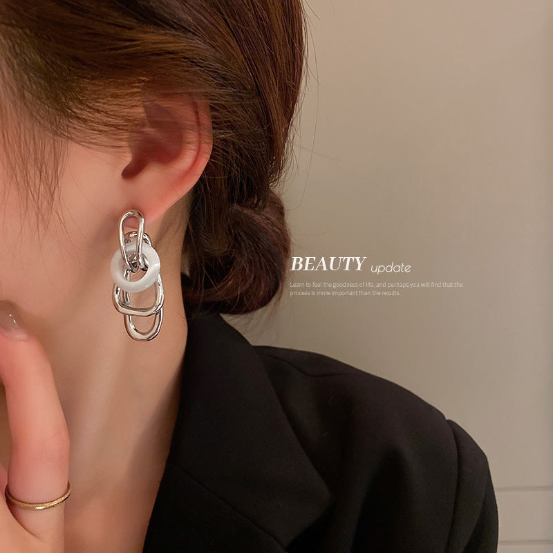 925 Silver Needle Geometric Opal Earrings