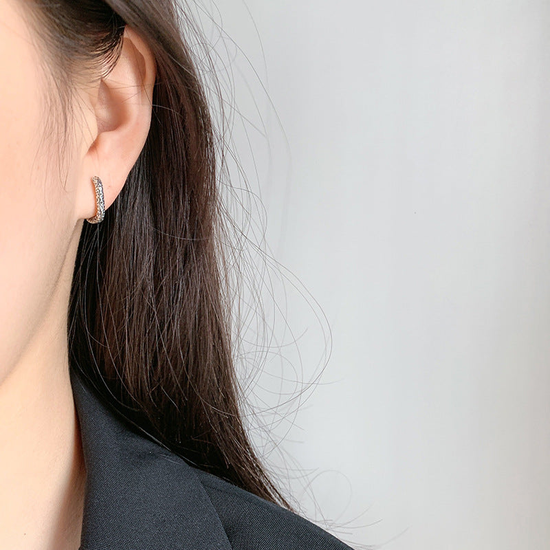 925 Sterling Silver Oval Metallic Bump Texture Geometric Personality Circle Earrings